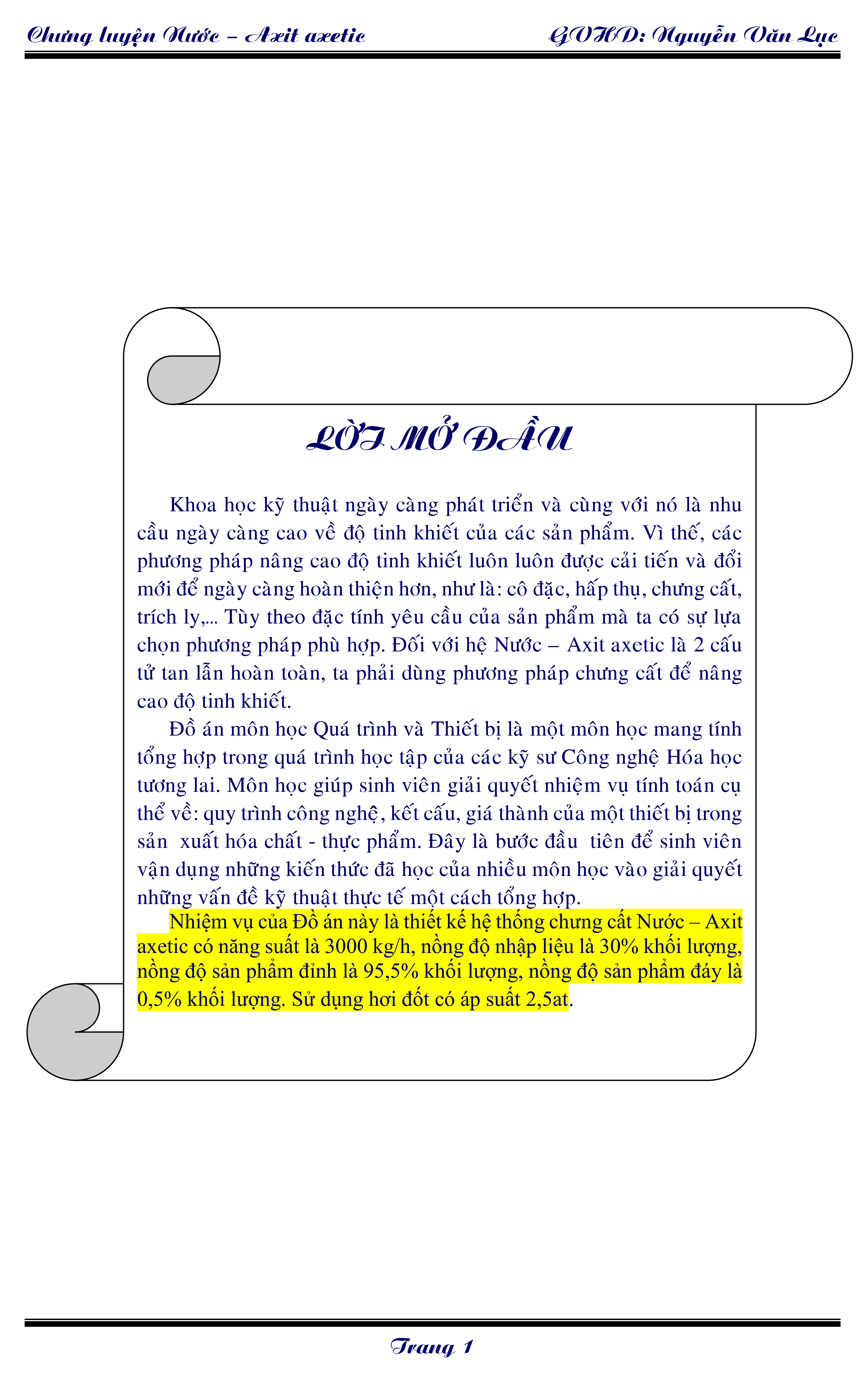 Thiết kế hệ thống chưng cất Nước – Axit axetic có năng suất là 3000 kg/h